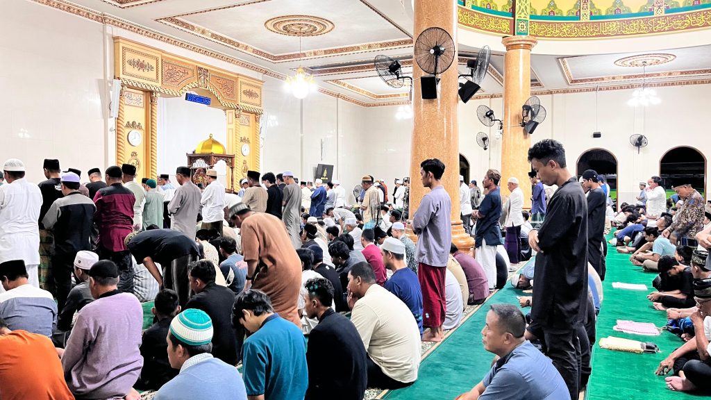 NUSANTARAKALTIM, TANJUNG REDEB – Suasana khidmat menyelimuti pelaksanaan salat Tarawih Ramadan 1447 Hijriah di Masjid Besar Rayatul Ikhlas, yang berlokasi