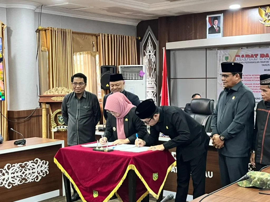 Penandatanganan dilakukan oleh Bupati Berau, Sri Juniarsih, bersama Ketua DPRD Berau, Dedy Okto Nooryanto, didampingi Wakil Ketua Subroto dan Sumadi.