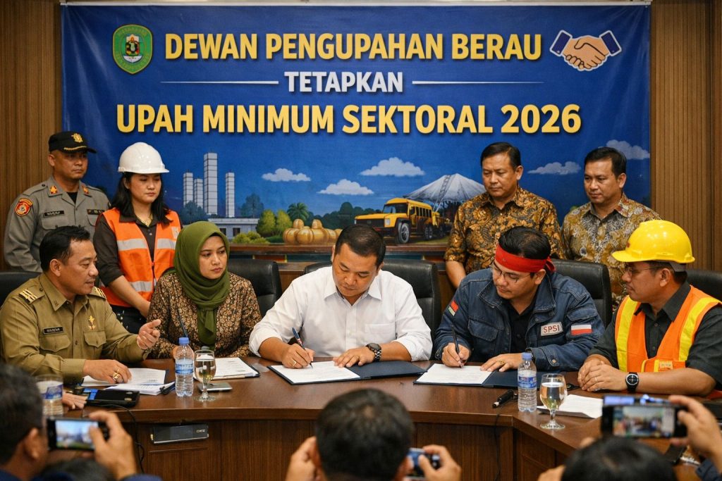 NUSANTARAKALTIM, TANJUNG REDEB – Dewan Pengupahan Kabupaten Berau akhirnya menyepakati besaran Upah Minimum Sektoral Kabupaten (UMSK) Berau 2026 naik 6,65 persen, Minggu, (21/12/2025), pukul 17.10 Wita.