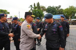 NUSANTARAKALTIM,BALIKPAPAN– Kapolda Kaltim Irjen Pol. Endar Priantoro, pimpin apel pelepasan personel Satuan Brimob Polda Kaltim yang akan diberangkatkan untuk tugas