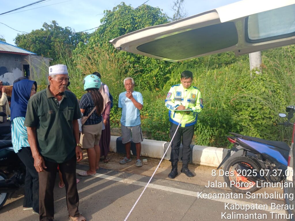 NUSANTARAKALTIM, TANJUNGREDEB – Kecelakaan lalu lintas terjadi di Jalan Poros Limunjan, Kecamatan Sambaliung, pada Senin. (8/12). Akibat kejadian tersebut, sang pengendara motor meninggal dunia, sementara anaknya masih menjalani perawatan intensif di rumah sakit.